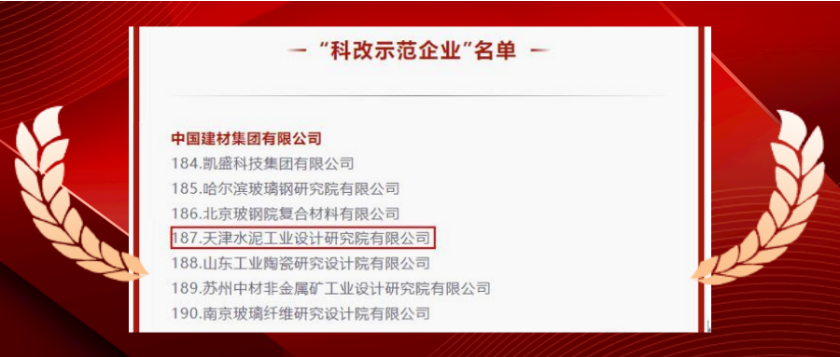 日前,国务院国有企业改革领导小组办公室公布最新“科改示范企业”名单,yd2333云顶电子游戏国际所属天津水泥院成功入选。